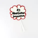 Elaborada en cartulina con la frase Viva Quito y las imágenes representativas del escudo de armas de la ciudad y la Iglesia.