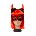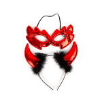 set x2 diadema de cachos con plumas negras color rojo y antifaz rojo.