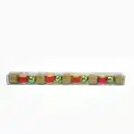 Decoración para árbol de Navidad, adornos de set de bombillo, tambor y regalo. Set de 7 mini adornos navideños incluye 3 cajas de regalo 2 bolas y 2 tambores con diseño brillante viene con una cuerda cada uno para colgar y decorar tu árbol de Navidad.
