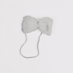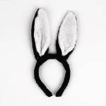 Set de diadema de felpa orejas de conejo con lazo o corbatín, y cola peluda color negro con blanco.