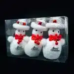 Set de 3 adornos de muñeco de nieve, cada personaje de invierno con detalles en color rojo. Ideal para complementar tus decoraciones de Navidad.