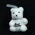 Set de 3 adornos ositos navideños, cada personaje lleva un collar plateado con un letrero de Merry Christmas. Ideal para complementar decoraciones navideñas o el arbolito de navidad.