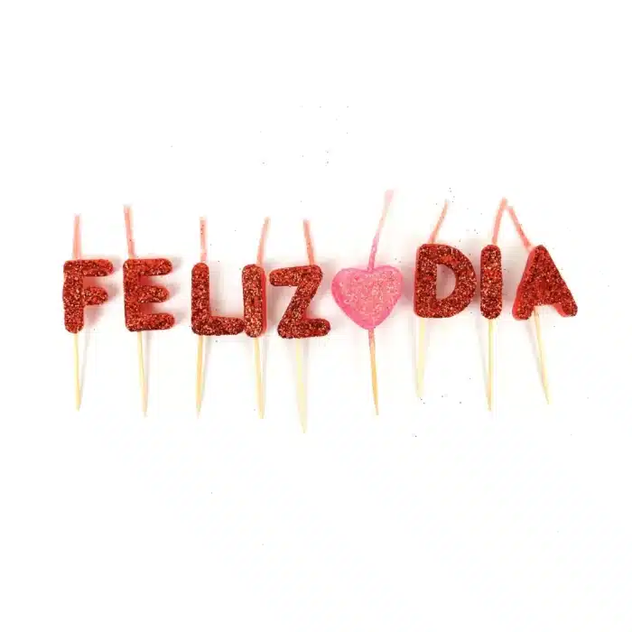 Velas en forma de letras de feliz dia.
