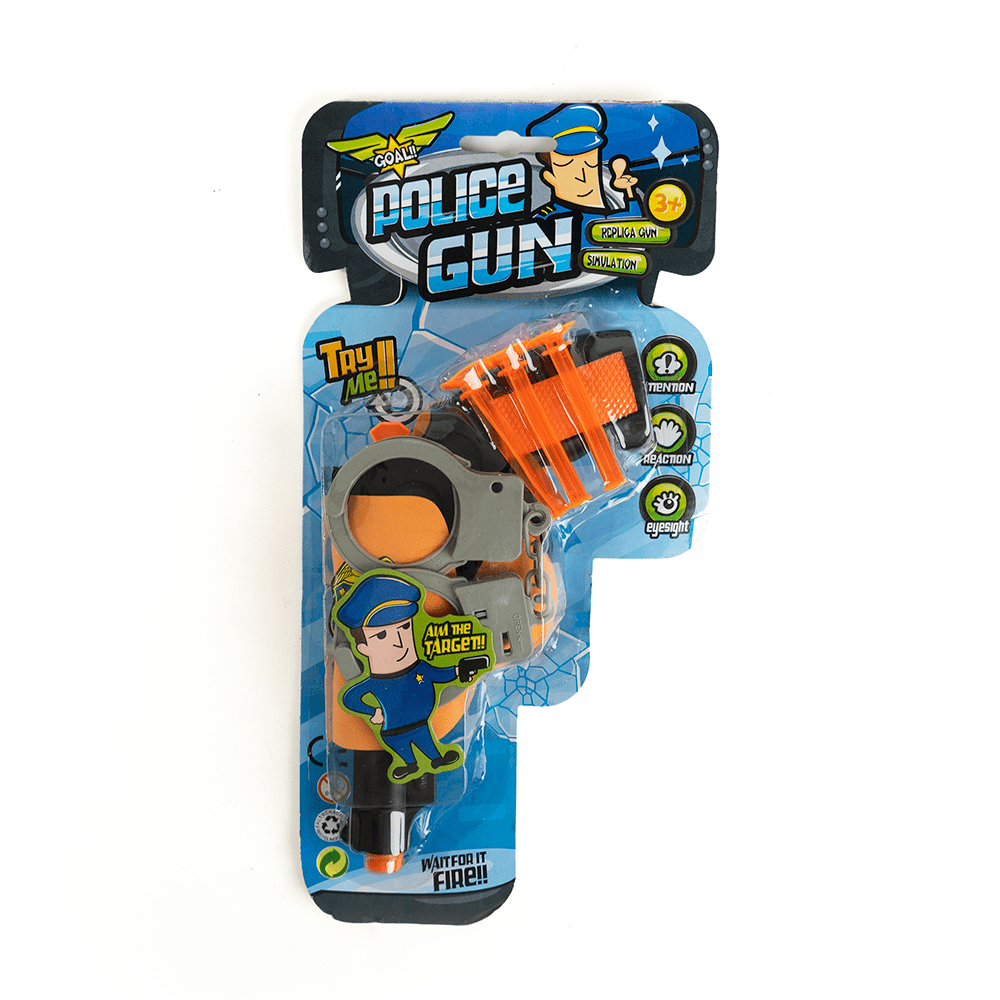 Set lanza dardos  de policía, incluye esposa, Para niños mayores de 3 años.
