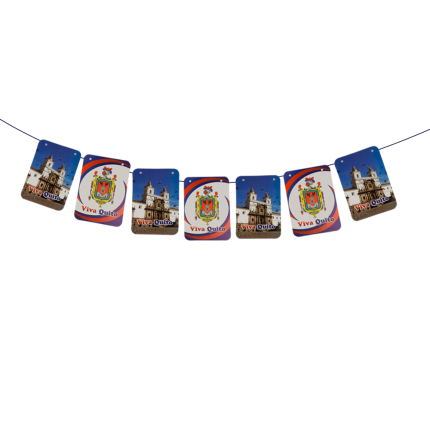 Elaborada en cartulina con la frase Viva Quito y las imágenes representativas del escudo de armas de la ciudad y la Iglesia.