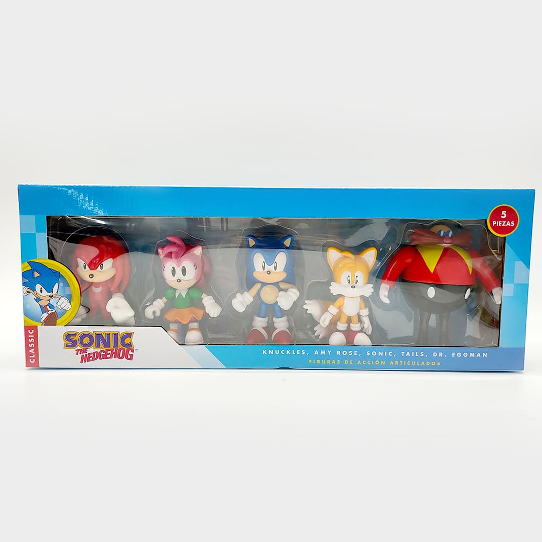 ¡Lleva a casa a los personajes más emblemáticos de Sonic the Hedgehog en este increíble set que incluye a Amy Rose, Tails, Knuckles, Dr. Eggman y, por supuesto, Sonic! Cada figura tiene un tamaño de 4″, con detalles fieles a los personajes que han conquistado generaciones de fanáticos.