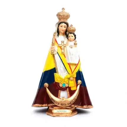 Virgen  María Auxiliadora, elaborada en poliresina y pintada a mano. Mide 12 pulgadas