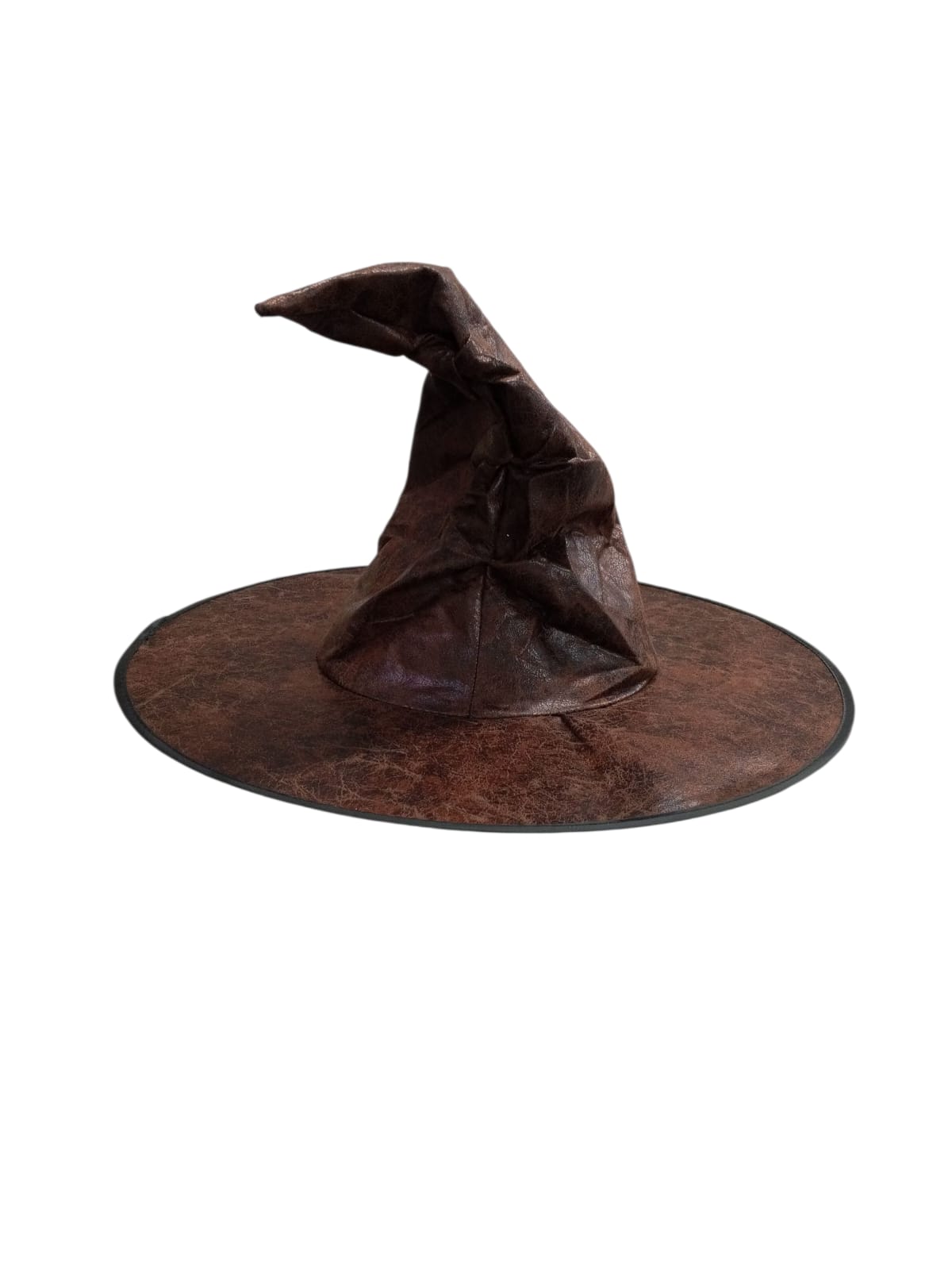 Dale un toque mágico y elegante a tu disfraz con este sombrero café estilo Harry Potter, elaborado con acabado cuerina que imita el cuero para un look más realista y sofisticado. Ideal para fiestas, Halloween o cosplay inspirado en el universo mágico.
