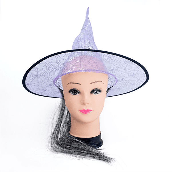 Sombrero de bruja con pelo, contiene diseño de telarañas, es el mejor sombrero para disfraces de Halloween y juegos de rol.