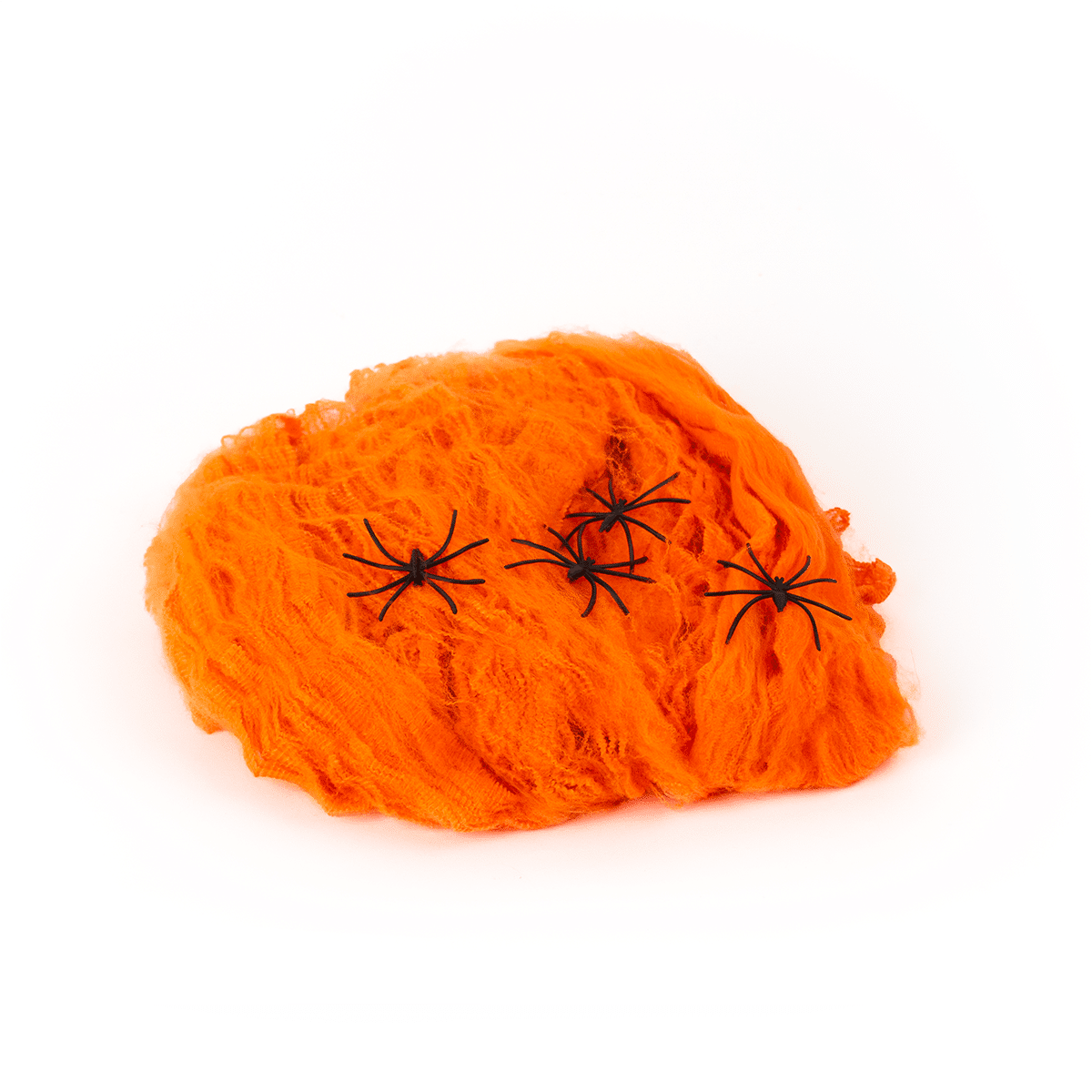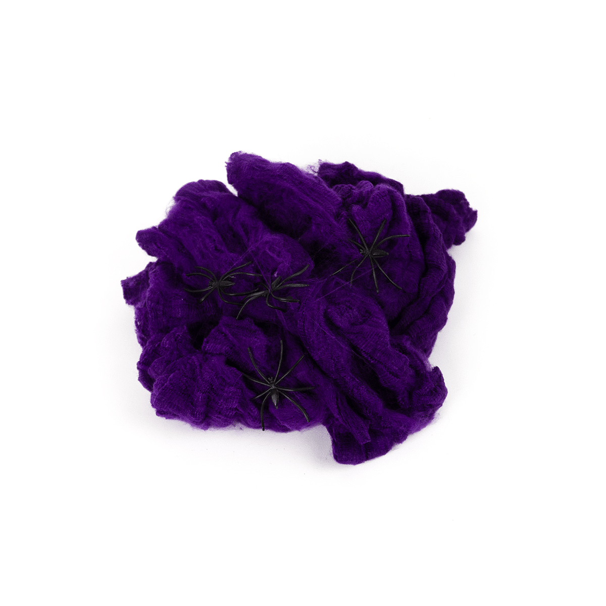 Telaraña color negro, morado, naranja y verde con arañas, perfectas para decorar.