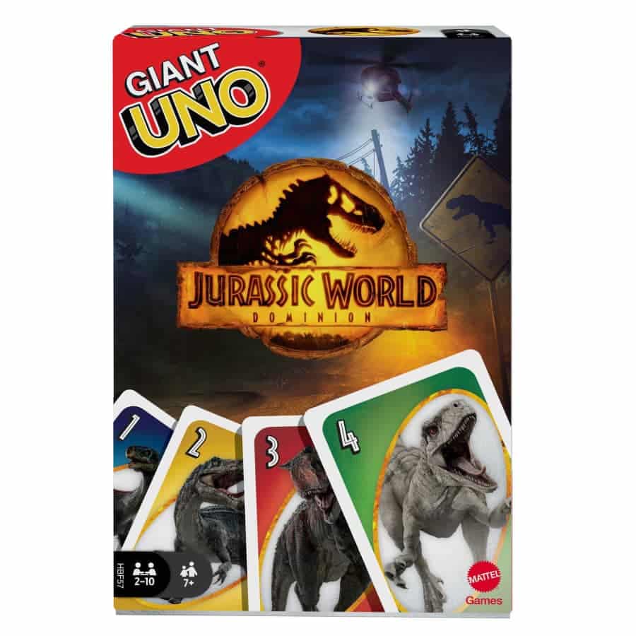 Este set especial de UNO te lleva a la era de los dinosaurios con cartas extra grandes y un diseño increíblemente temático, inspirado en el mundo de Jurassic World. Perfecto para disfrutar con amigos y familia mientras vives aventuras jurásicas.