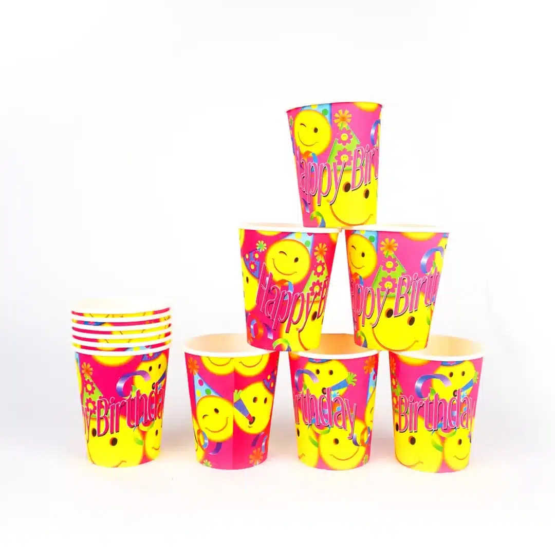 vaso de carton con diseños de cumpleaños