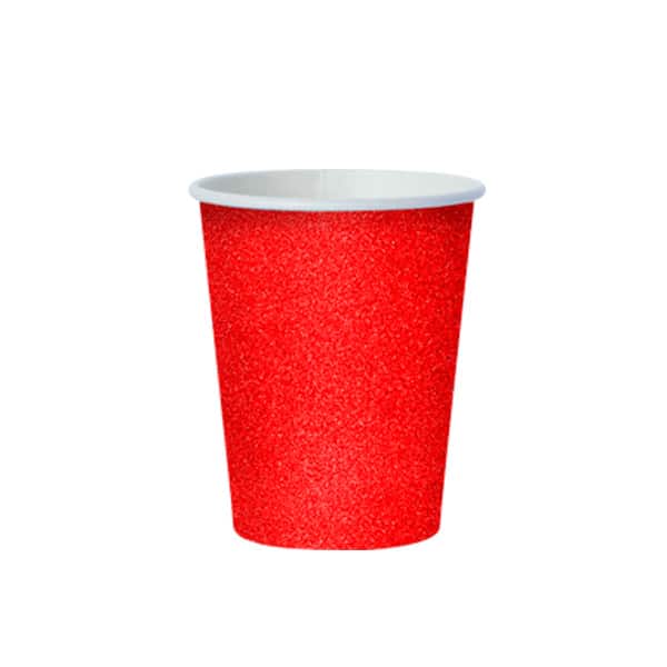 Vasos de Cartón Rojo con Brillos de 9 Onzas