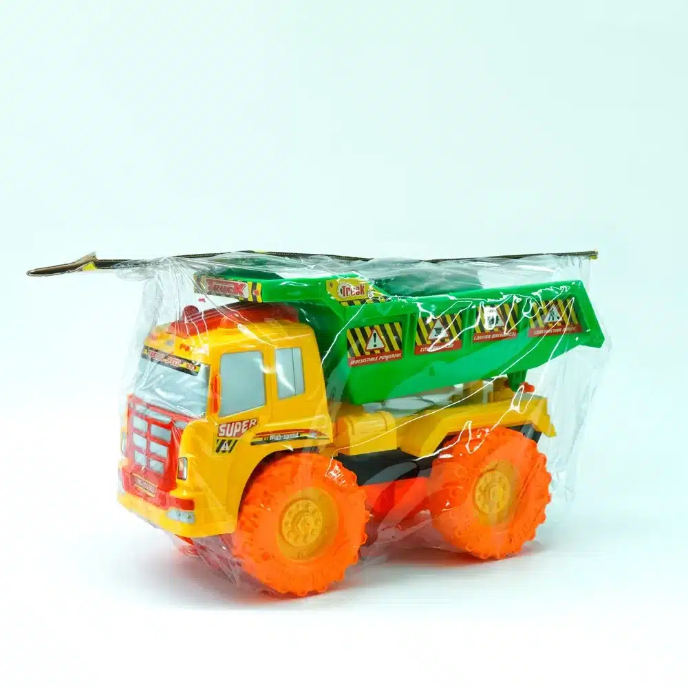 Volqueta, incluye una pala y un rastrillo playero. Dimensión: 39 cm (largo) x 18 cm (ancho) x 35 cm(alto) ,