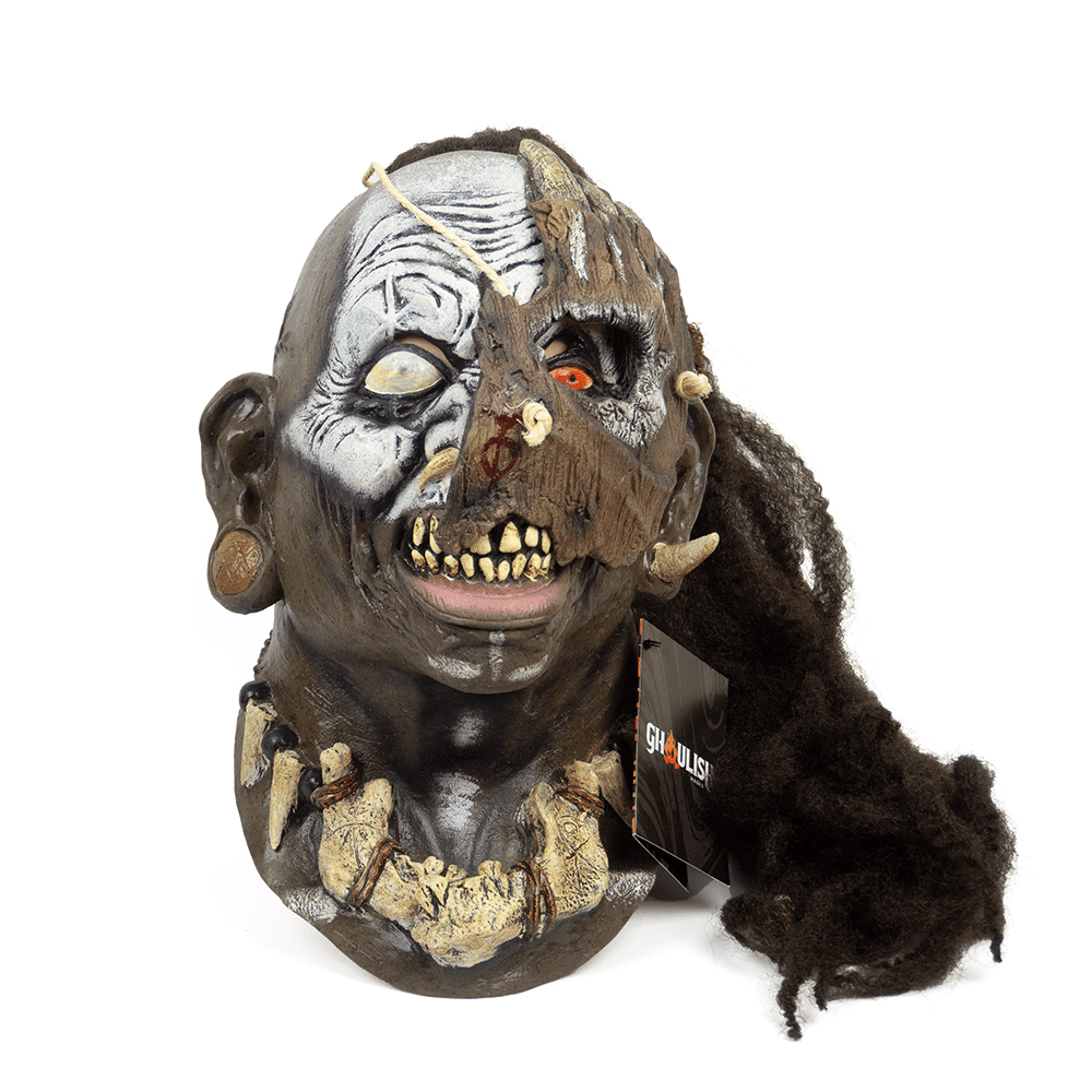Máscara de látex gruesa y resistente para adulto, con cuello y cabello sintetico. (VOODOO HOUNKANG)